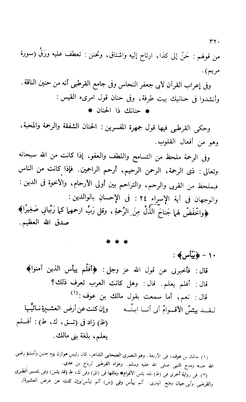 وفي إعراب القرآن لأبي جعفر النحاس وفي جامع القرطبي أنه من حنين الناقة. وأنشدوا في حنانيك بيت طرفة، وفي حنان قول امرئ القيس: