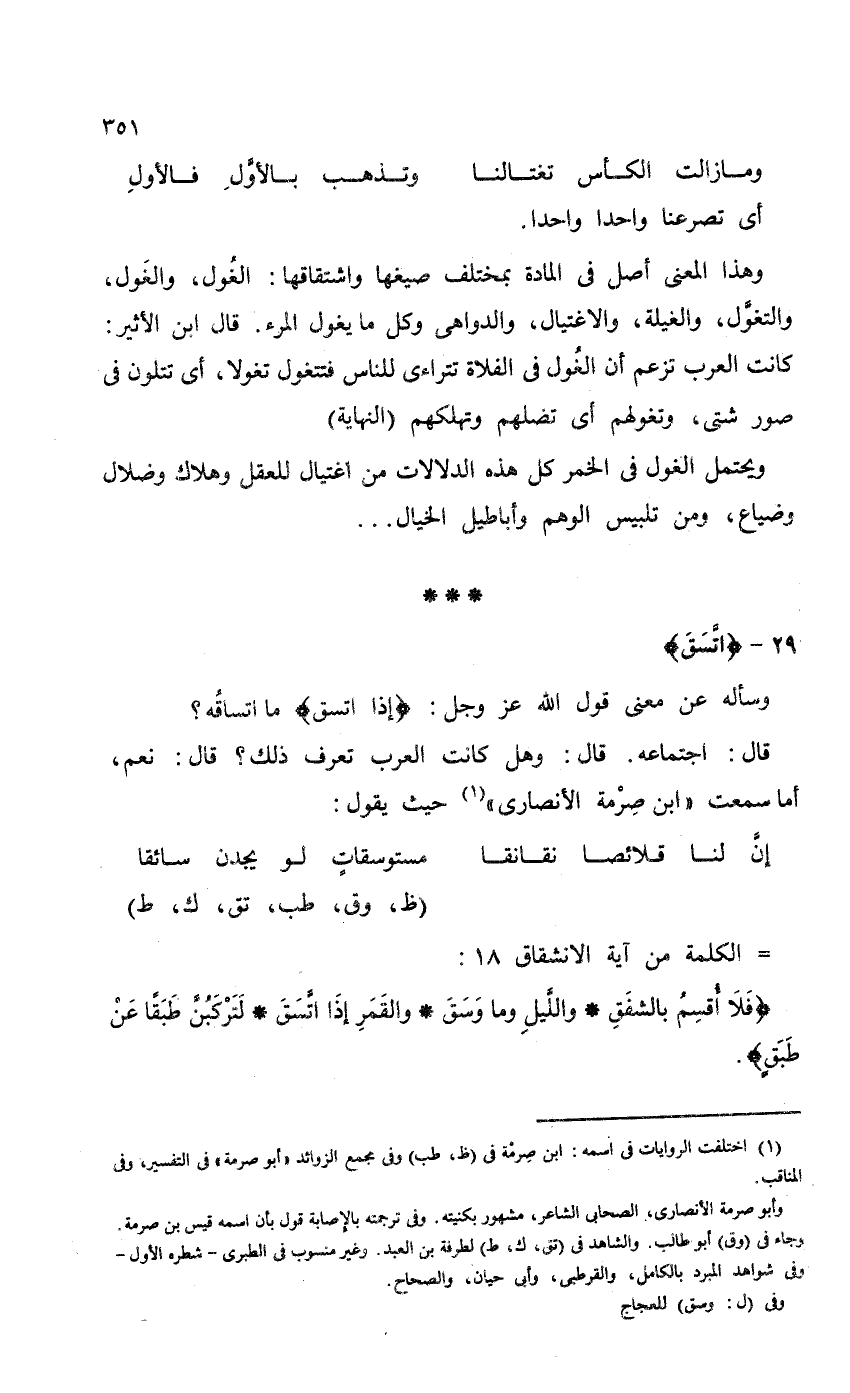 قال: اجتماعه. قال: وهل كانت العرب تعرف ذلك؟ قال: نعم، أما سمعت "ابن صِرْمة الأنصاري" حيث يقول: