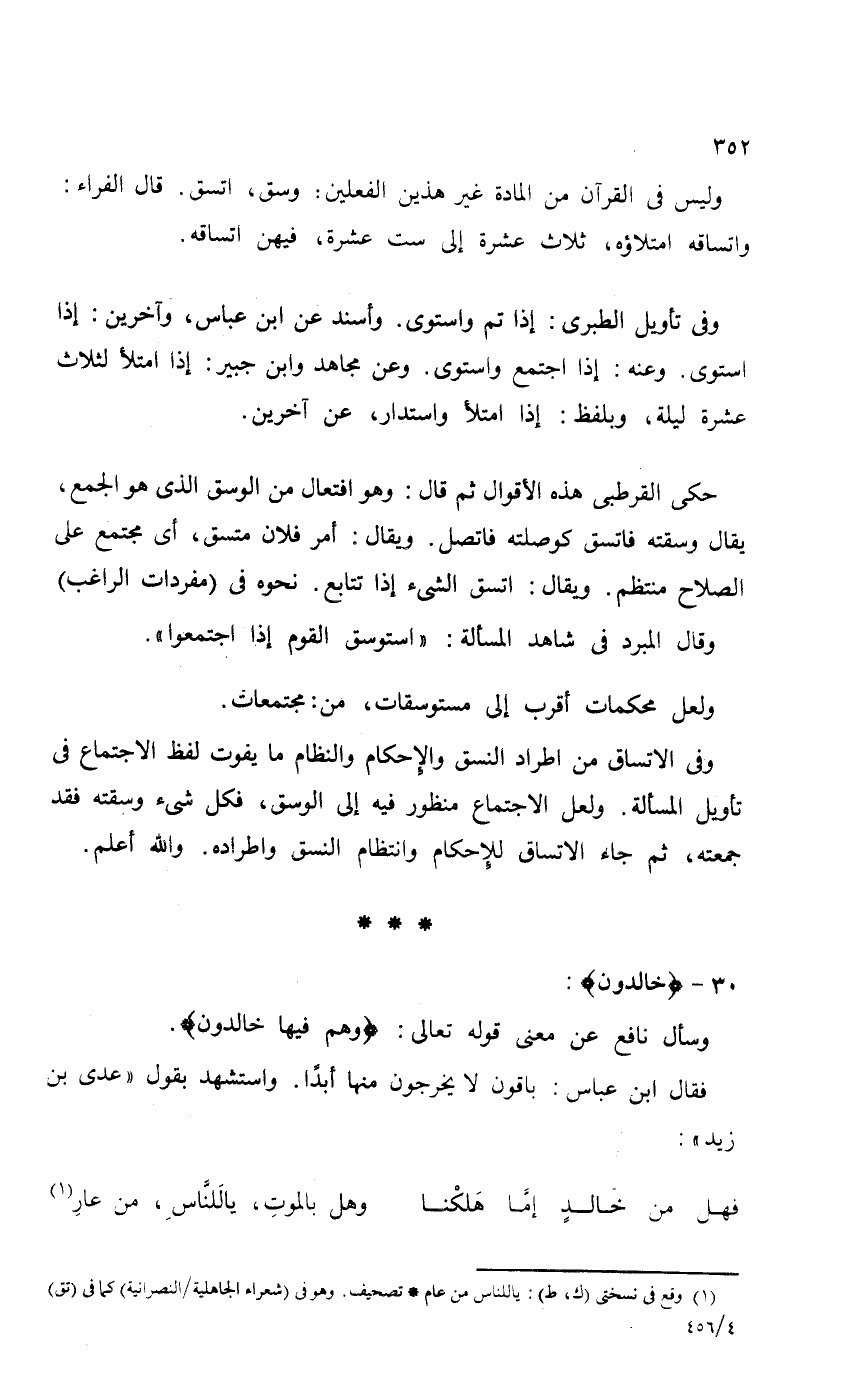وفي الاتساق من اطراد النسق والإحكام والنظام ما يفوت لفظ الاجتماع في تأويل المسألة. ولعل الاجتماع منظور فيه إلى الوسق، فكل شيء وسقته فقد جمعته، ثم جاء الاتساق للإحكام وانتظام النسق واطراده. والله أعلم.