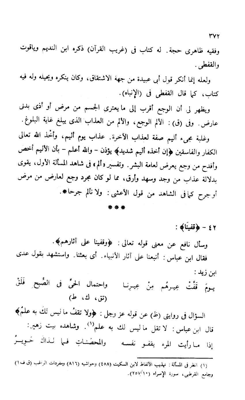 ولعله إنما أنكر قول أبي عبيدة من جهة الاشتقاق. وكان ينكره ويحيله وله فيه كتاب، كما قال القفطي في (الإنباه)