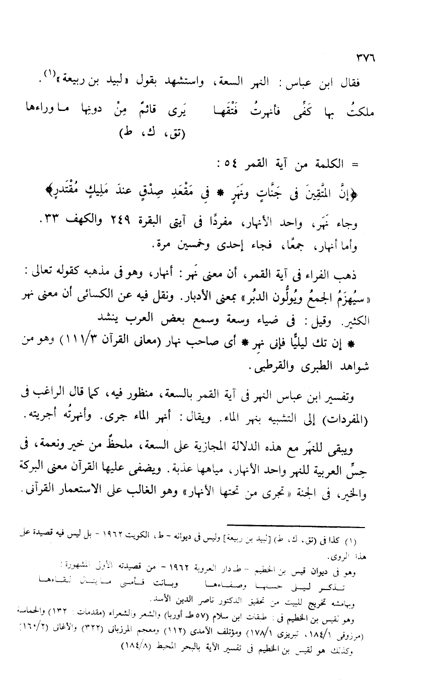 فقال ابن عباس: النهر السعة، واستشهد بقول "لبيد بن ربيعة".