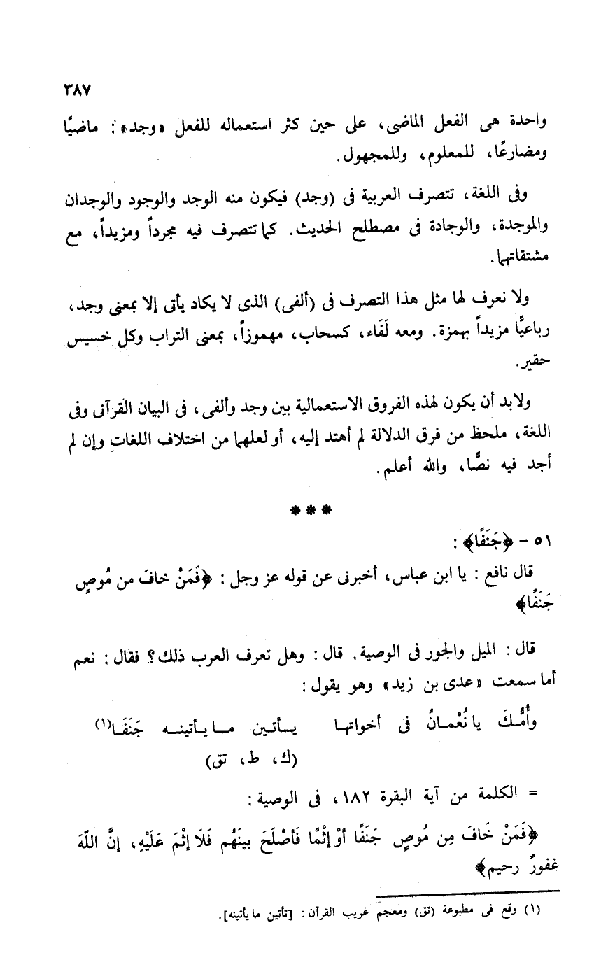 قال: الميل والجور في الوصية. قال: وهل تعرف العرب ذلك؟ فقال: نعم أما سمعت "عدى بن زيد" وهو يقول: