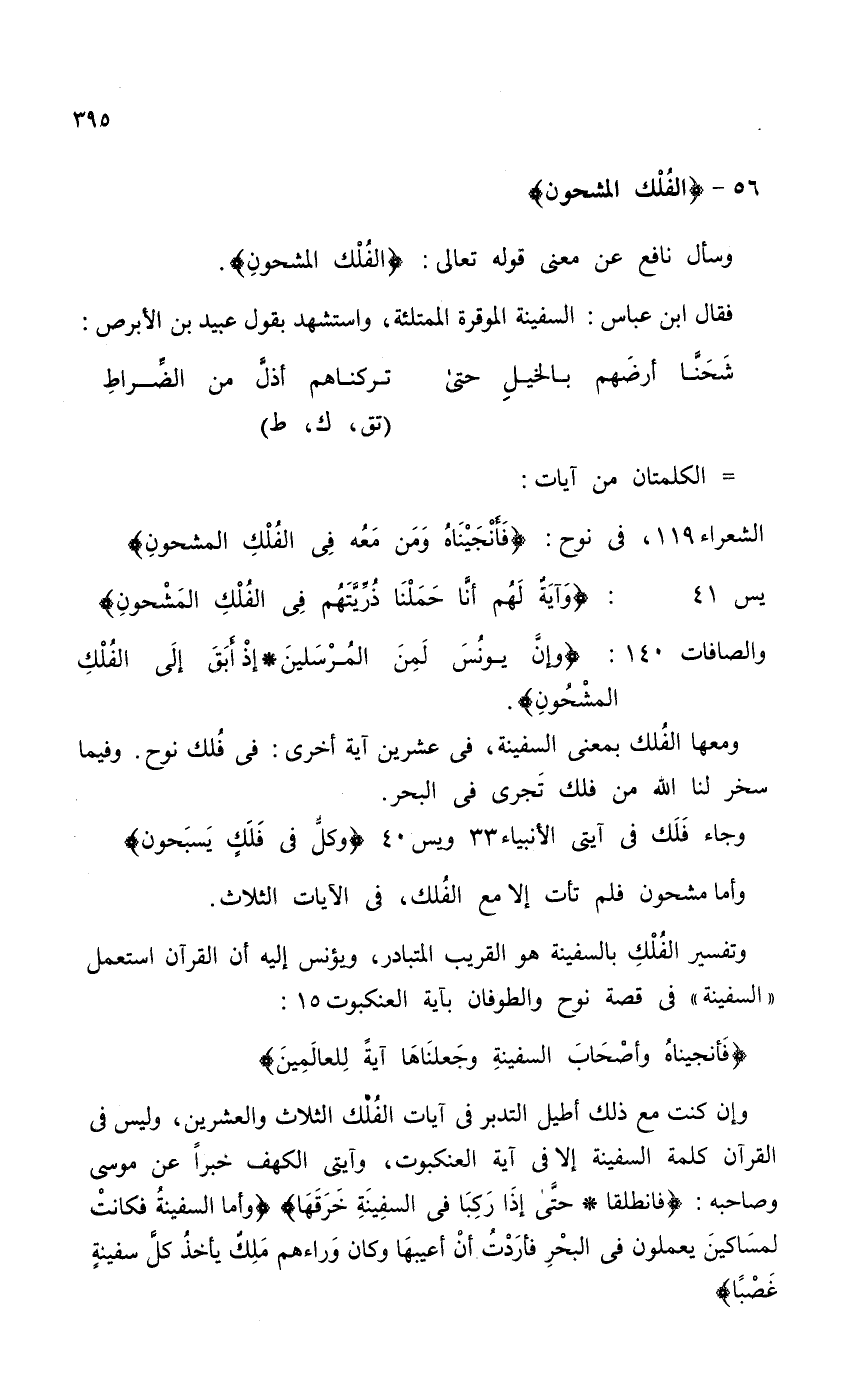 ومعها الفُلك بمعنى السفينة، في عشرين آية أخرى: في فُلك نوح. وفيما سخر لنا الله من فلك تَجرى في البحر.