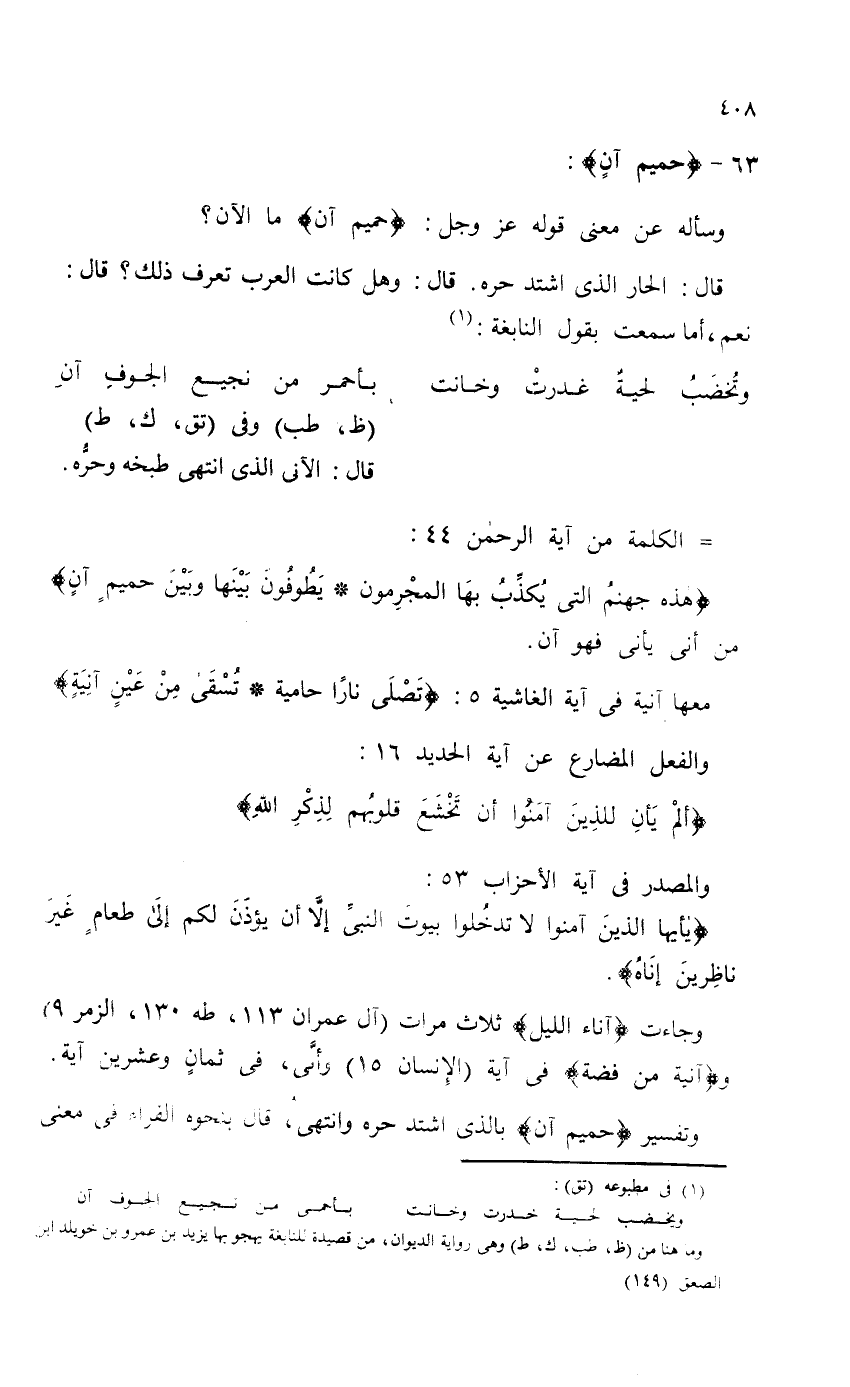 وسأله عن معنى قوله - عز وجل -: {حَمِيمٍ آنٍ} ما الآن؟