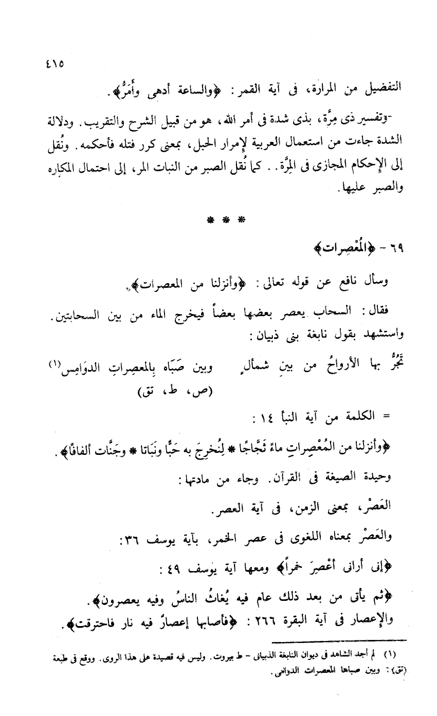 وسأل نافع عن قوله تعالى: {وَأَنْزَلْنَا مِنَ الْمُعْصِرَاتِ}