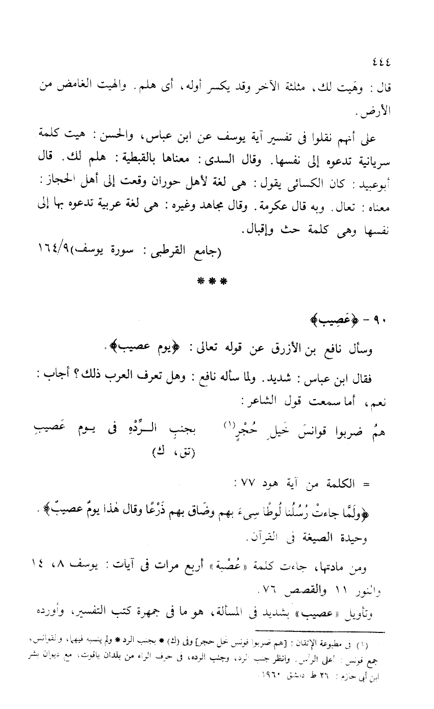 وتأويل "عصيب" بشديد في المسألة، هو ما في جمهرة كتب التفسير، وأورده