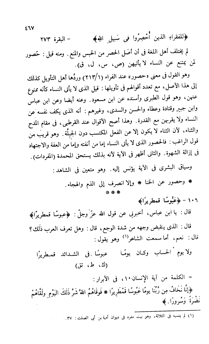 {لِلْفُقَرَاءِ الَّذِينَ أُحْصِرُوا فِي سَبِيلِ اللَّهِ} - البقرة 273