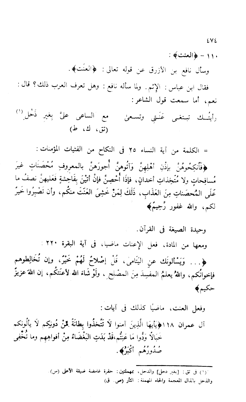 وسأل نافع بن الأزرق عن قوله تعالى: {الْعَنَتَ}