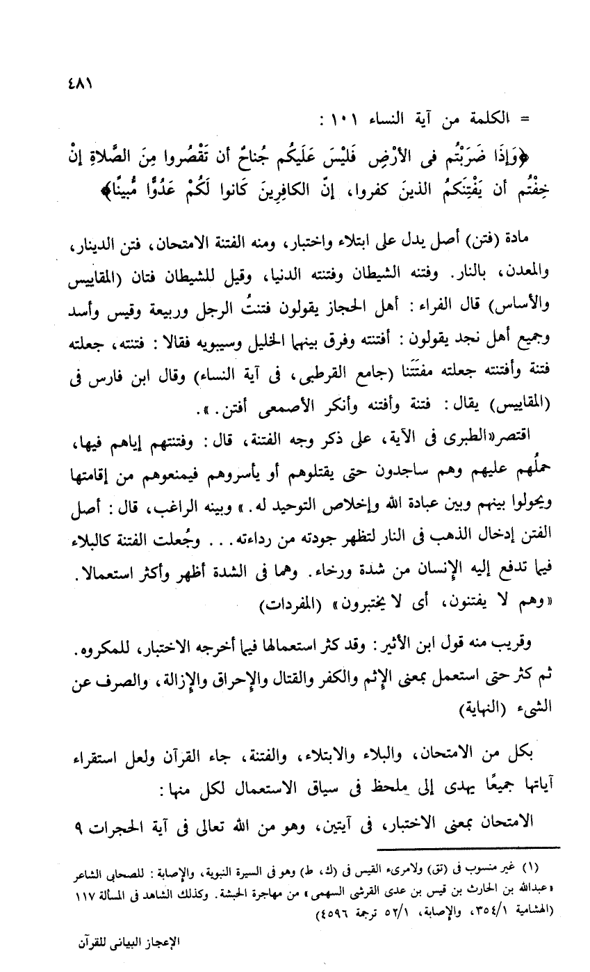 {وَإِذَا ضَرَبْتُمْ فِي الْأَرْضِ فَلَيْسَ عَلَيْكُمْ جُنَاحٌ أَنْ تَقْصُرُوا مِنَ الصَّلَاةِ إِنْ خِفْتُمْ أَنْ يَفْتِنَكُمُ الَّذِينَ كَفَرُوا إِنَّ الْكَافِرِينَ كَانُوا لَكُمْ عَدُوًّا مُبِينًا}