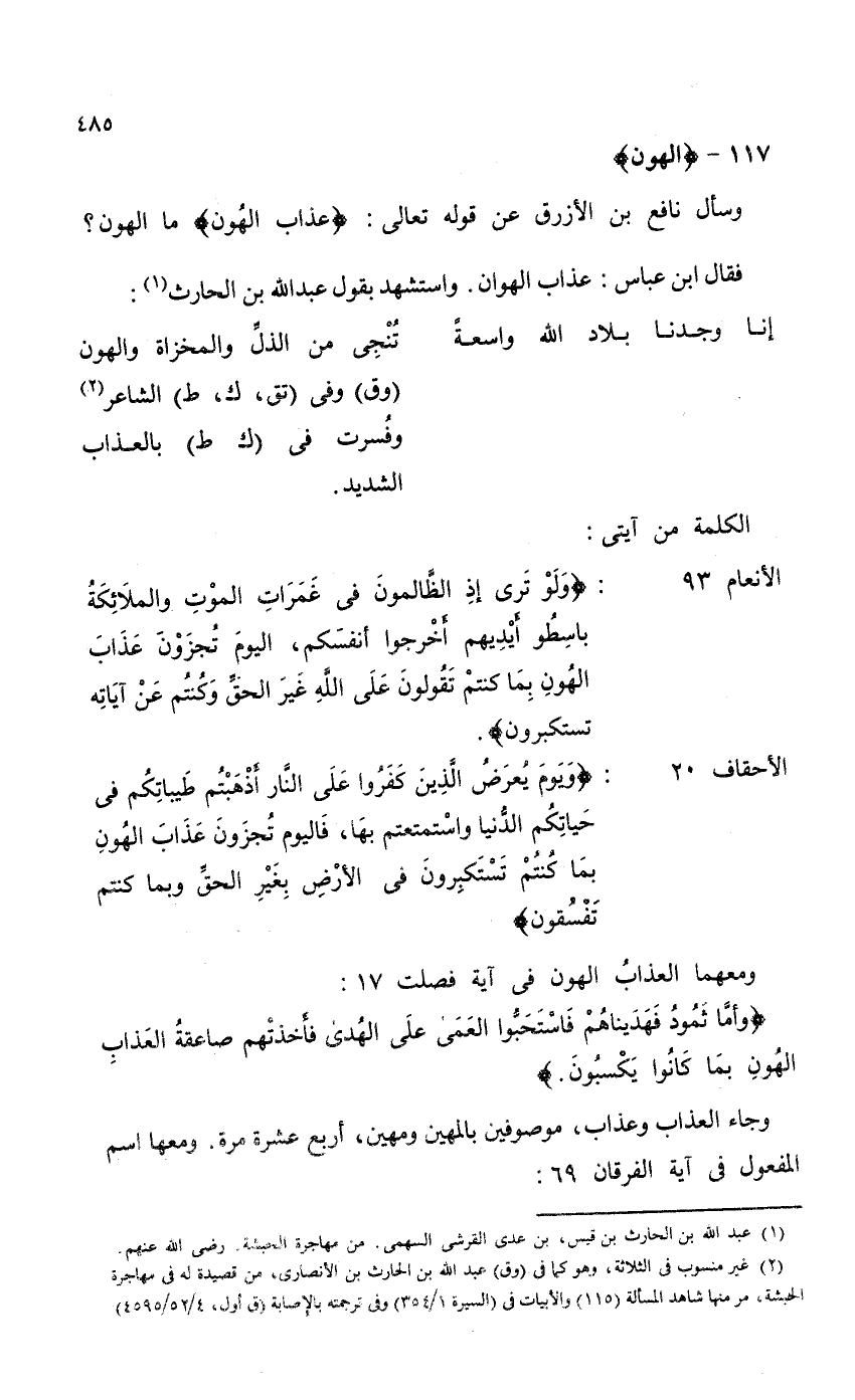 وسأل نافع بن الأزرق عن قوله تعالى: {عَذَابَ الْهُونِ} ما الهون؟