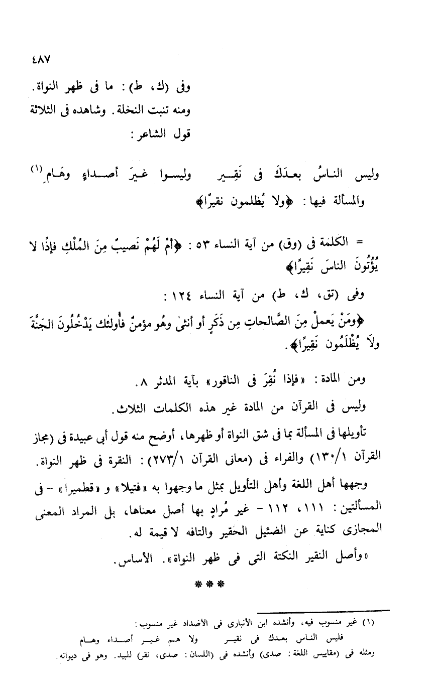 "وأصل النقير النكتة التي في ظهر النواة". الأساس.