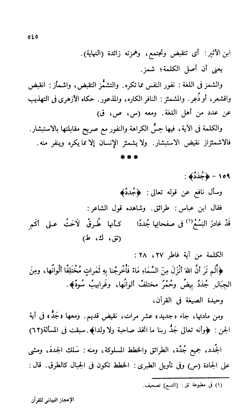 وسأل نافع عن قوله تعالى: {جُدَدٌ}