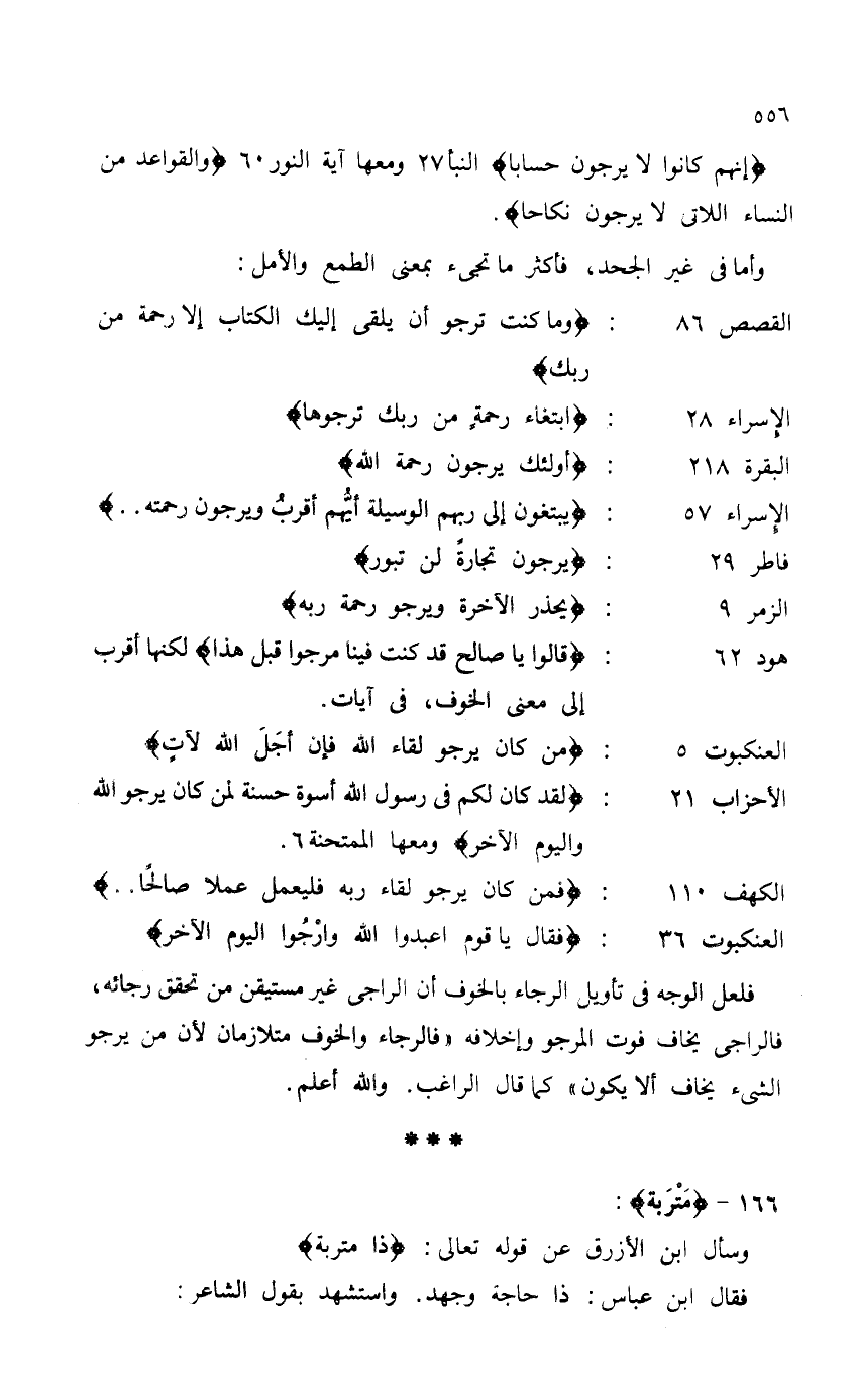 {إِنَّهُمْ كَانُوا لَا يَرْجُونَ حِسَابًا} النبأ 27 ومعها آية النور 60 {وَالْقَوَاعِدُ مِنَ النِّسَاءِ اللَّاتِي لَا يَرْجُونَ نِكَاحًا}