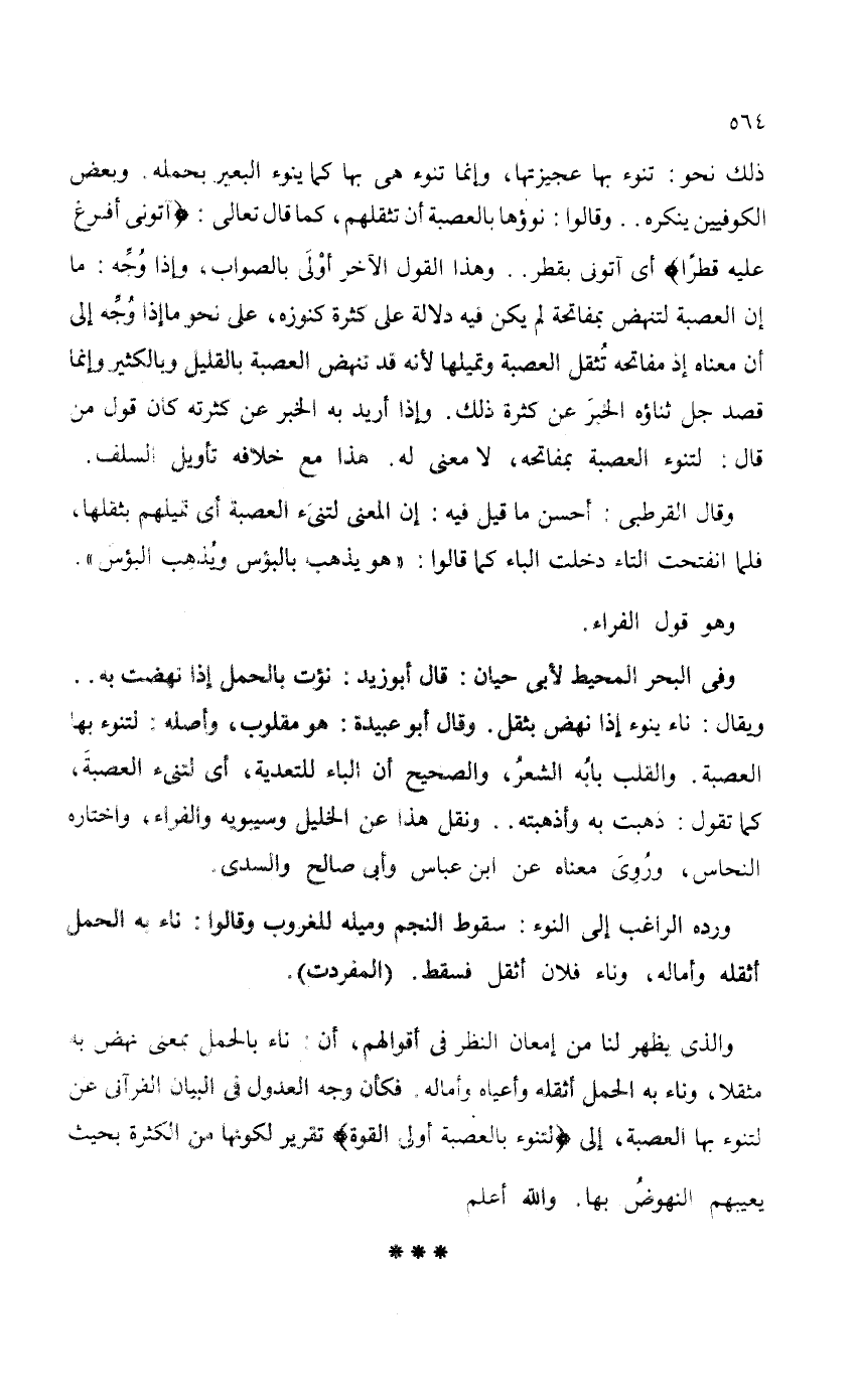 وفى البحر المحيط لأبي حيان: قال أبو زيد: نؤت بالحمل إذا نهضت به. .