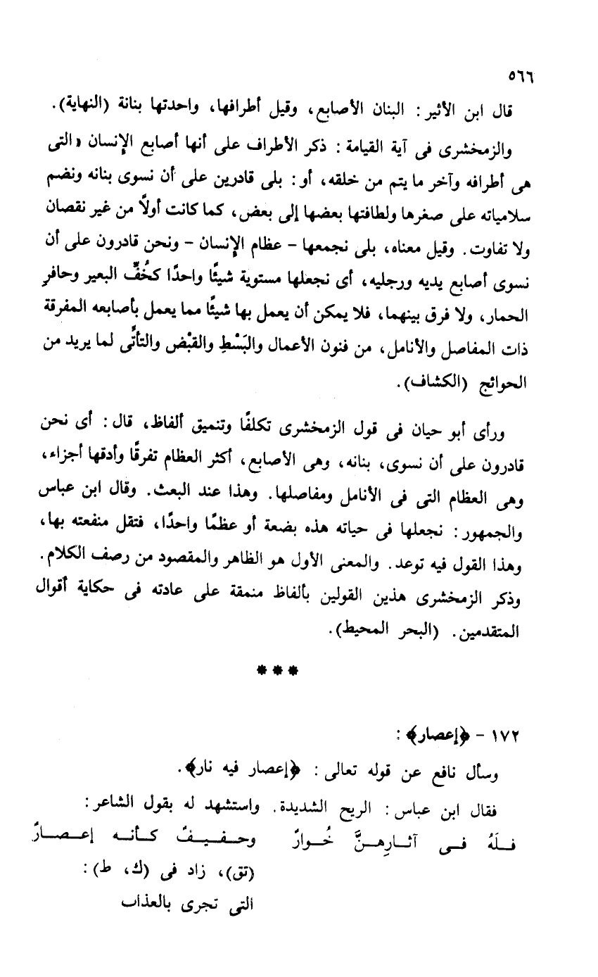 والزمخشرى فى آية القيامة: ذكر الأطراف على أنها أصابع الإنسان التى