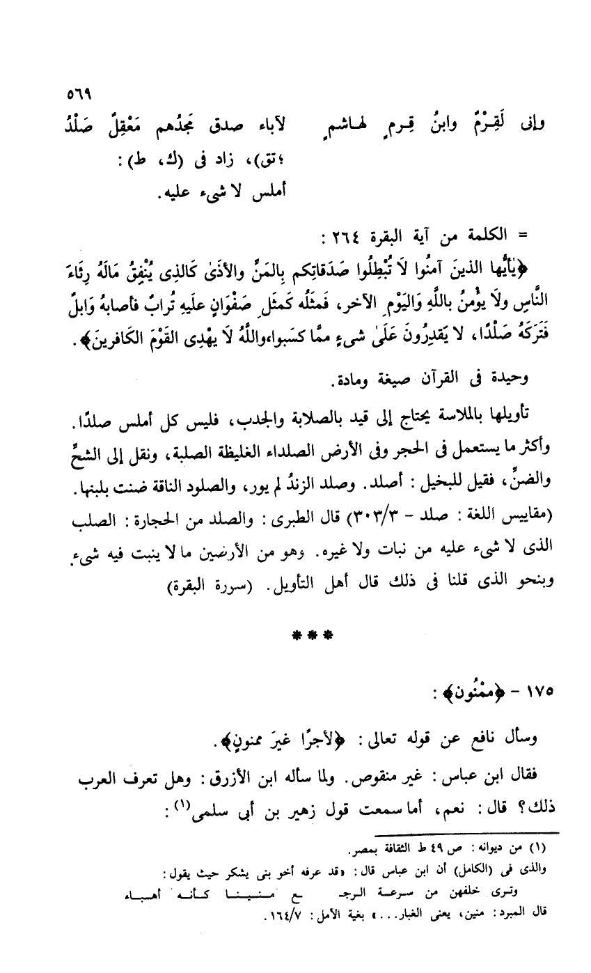 فقال ابن عباس: غير منقوص. ولما سأله ابن الأزرق: وهل تعرف العرب