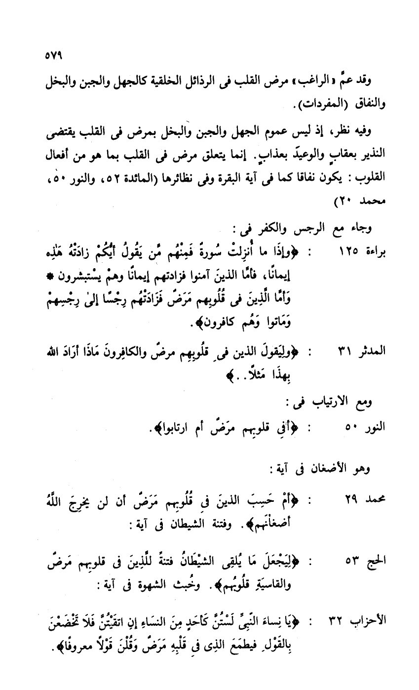 وقد عمَّ الراغب مرض القلب فى الرذائل الخلقية كالجهل والجبن والبخل