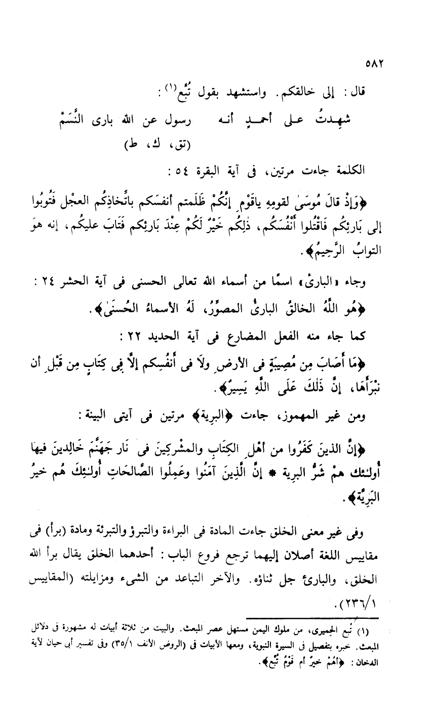 قال: إلى خالقكم. واستشهد بقول تُبَّع: