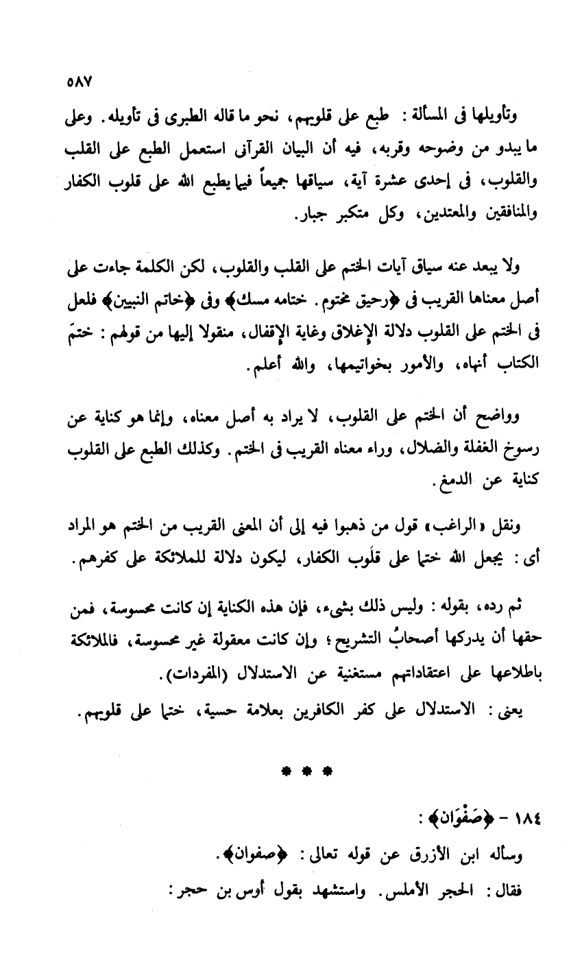 ونقل الراغب، قول من ذهبوا فيه إلى أن المعنى القريب من الختم هو المراد