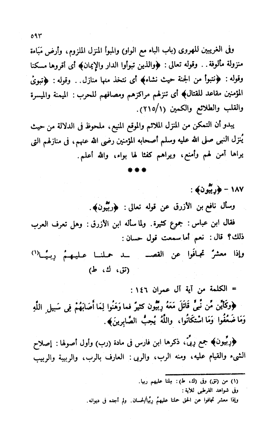 وسأل نافع ابن الأزرق عن قوله تعالى: (رِبِّيُّونَ) .