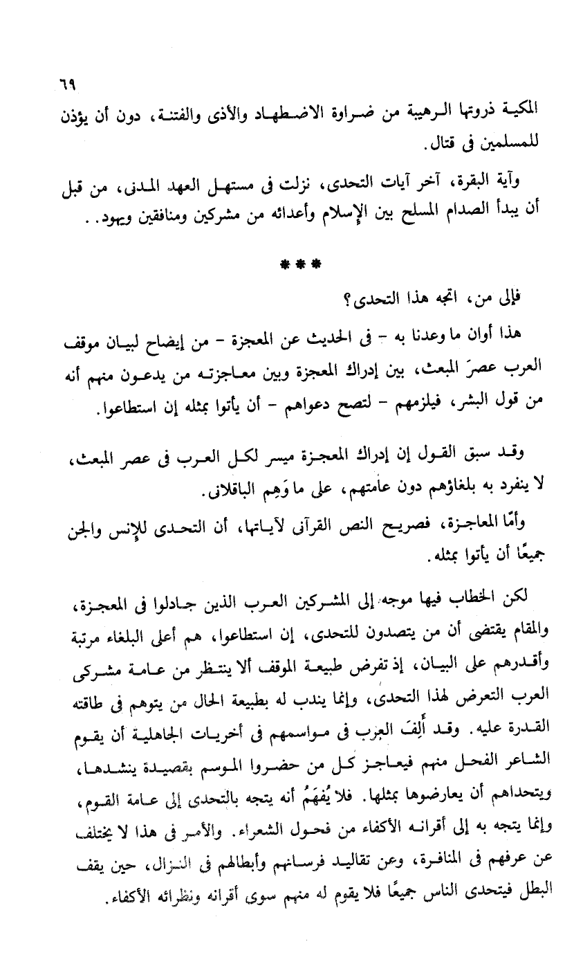 وآية البقرة آخر آيات التحدي، نزلت في مستهل العهد المدني، من قبل أن يبدأ الصدام المسلح بين الإسلام وأعدائه من مشركين ومنافقين ويهود. . .