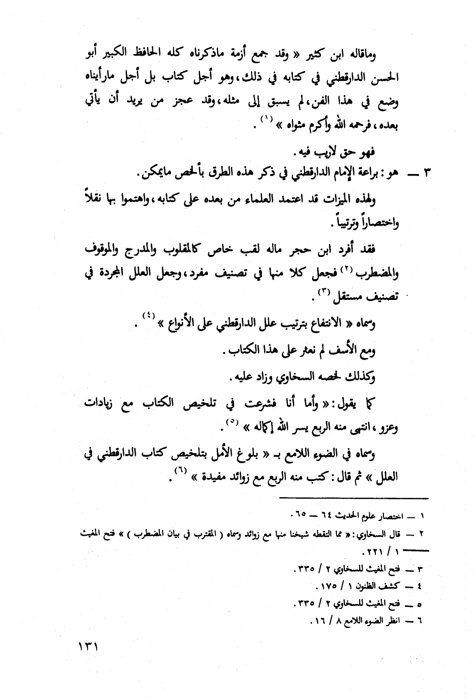 وما قاله ابن كثير " وقد جمع أزمة ما ذكرناه كله الحافظ الكبير أَبو الحسن الدارقطني في كتابه في ذلك، وهو أجل كتاب بل أجل ما رأيناه وضع في هذا الفن، لم يسبق إلى مثله، وقد عجز من يريد أن يأتي