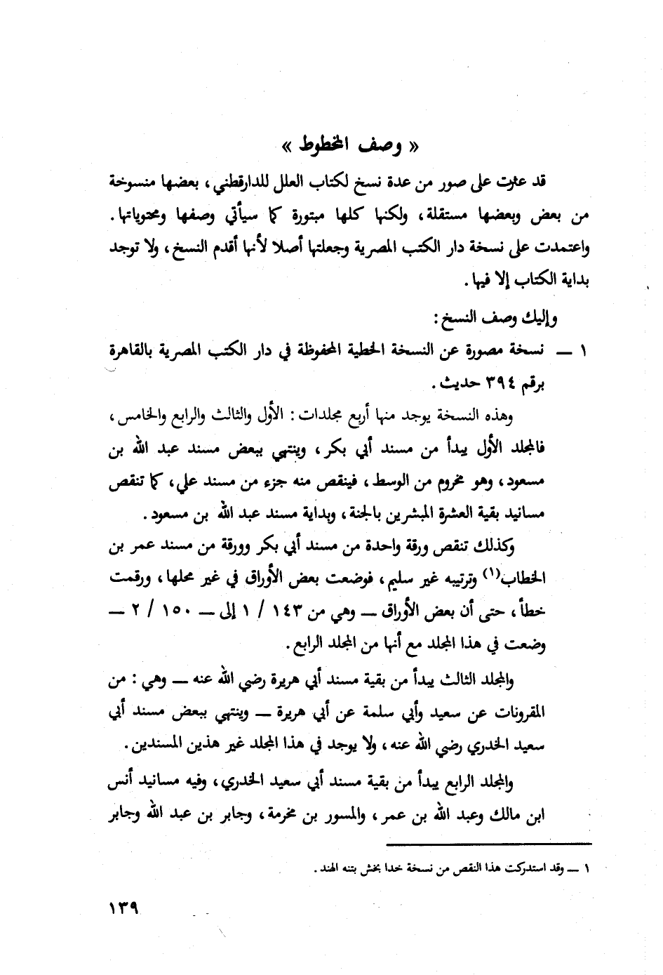 وإليك وصف النسخ: 1 - نسخة مصورة عن النسخة الخطية المحفوظة في دار الكتب المِصريّة بالقاهرة برقم 394 حديث.