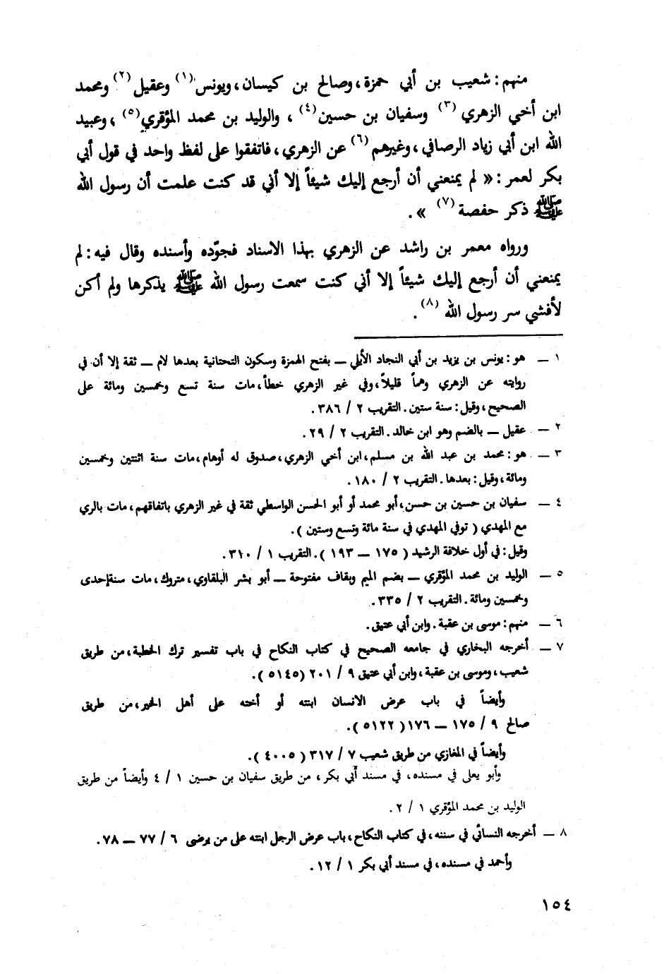 مِنْهُمْ شُعَيْبُ بْنُ أَبِي حَمْزَةَ، وَصَالِحُ بْنُ كيسان، ويونس وعقيل، ومحمد بن أَخِي الزُّهْرِيِّ، وَسُفْيَانُ بْنُ حُسَيْنٍ وَالْوَلِيدُ بْنُ محمد المؤقري، وَعُبَيْدُ اللَّهِ بْنُ أَبِي زِيَادٍ الرُّصَافِيُّ، وَغَيْرُهُمْ عَنِ الزُّهْرِيِّ فَاتَّفَقُوا عَلَى لَفْظٍ وَاحِدٍ فِي قَوْلِ أَبِي بَكْرٍ لِعُمَرَ لَمْ يَمْنَعْنِي أَنْ أَرْجِعَ إِلَيْكَ شَيْئًا إِلَّا أَنِّي قَدْ كُنْتُ عَلِمْتُ أَنَّ رَسُولَ اللَّهِ صَلَّى اللَّهُ عَلَيْهِ وَسَلَّمَ ذَكَرَ حَفْصَةَ.