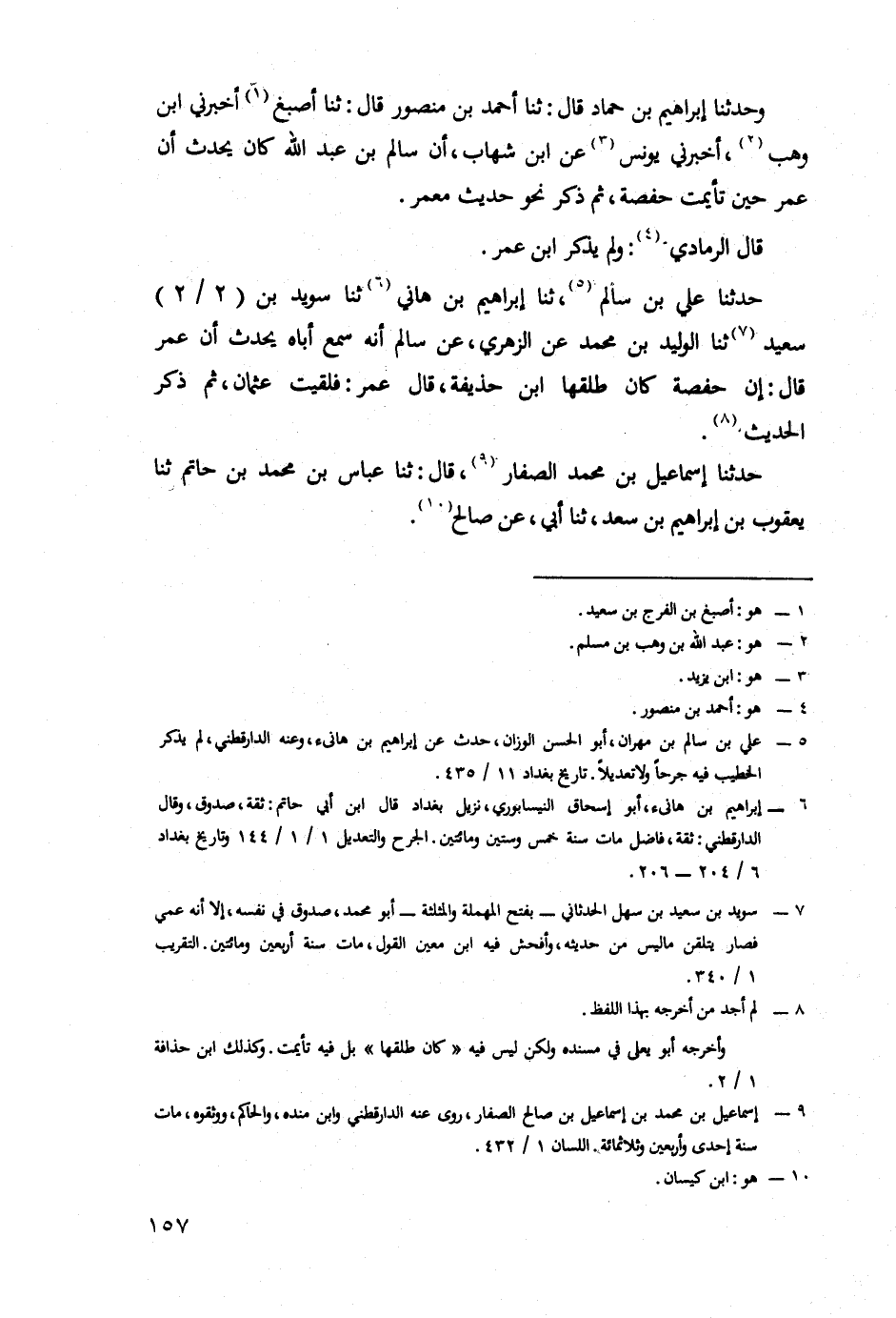 حدثنا علي بن سالم حدثنا إبراهيم بن هاني حدثنا سويد بن سعيد، حدثنا الْوَلِيدُ بْنُ مُحَمَّدٍ عَنِ الزُّهْرِيِّ، عَنْ سَالِمٍ أَنَّهُ سَمِعَ أَبَاهُ يُحَدِّثُ أَنَّ عُمَرَ قَالَ إن حفصة كان طلقها بن حُذَيْفَةَ قَالَ عُمَرُ فَلَقِيتُ عُثْمَانَ ثُمَّ ذَكَرَ الْحَدِيثَ.