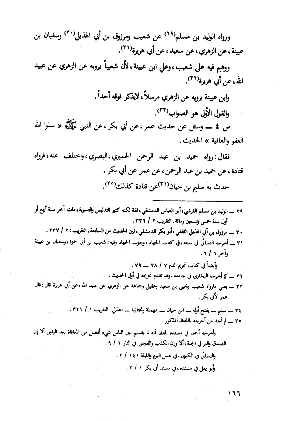 4- وَسُئِلَ عَنْ حَدِيثِ عُمَرَ، عَنْ أَبِي بَكْرٍ، عَنِ النَّبِيِّ صَلَّى اللَّهُ عَلَيْهِ وَسَلَّمَ: سَلُوا الله العفو والعافية. الحديث.