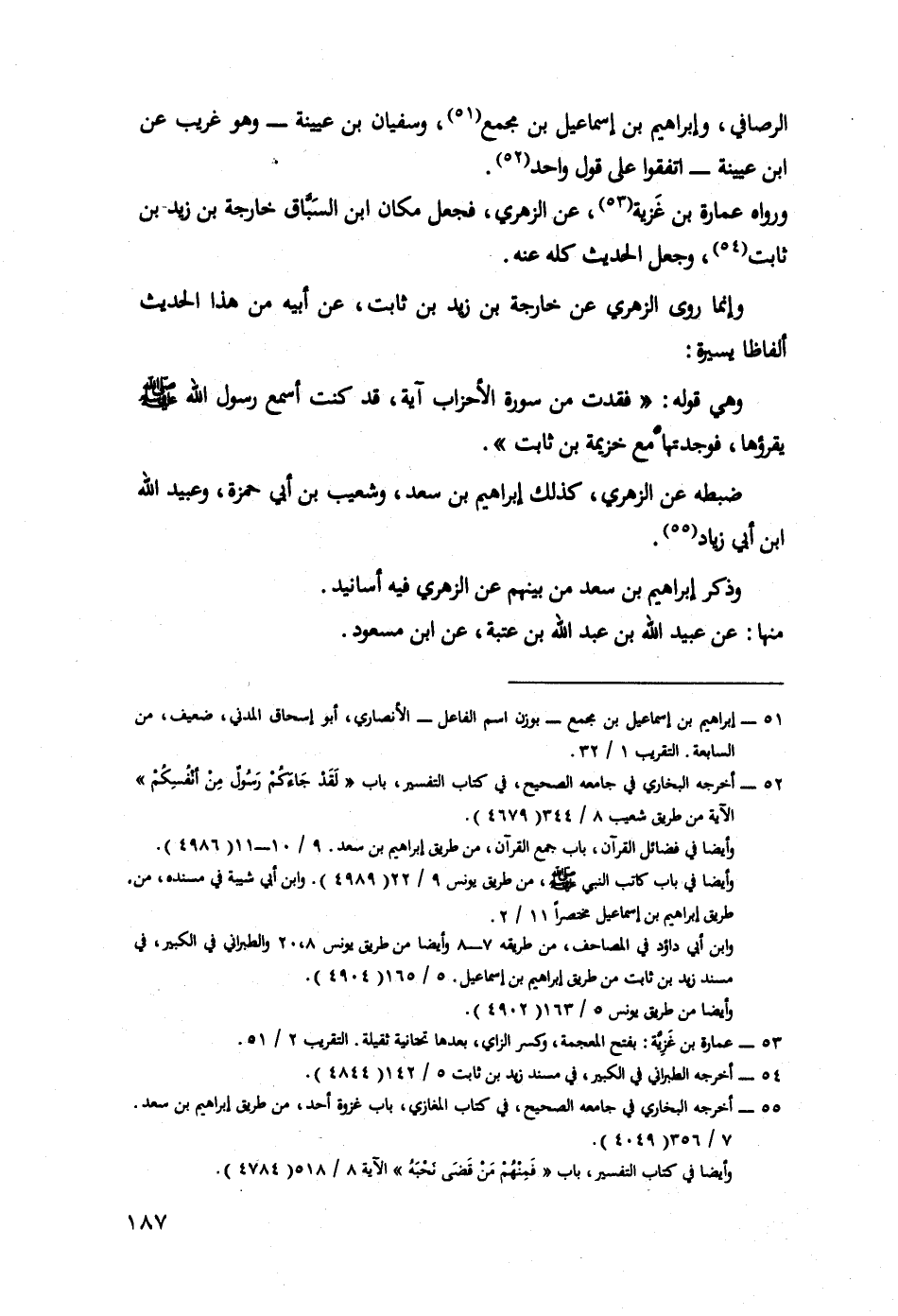وَذَكَرَ إِبْرَاهِيمَ بْنَ سَعْدٍ مِنْ بَيْنِهِمْ عَنِ الزُّهْرِيِّ فِيهِ أَسَانِيدُ.