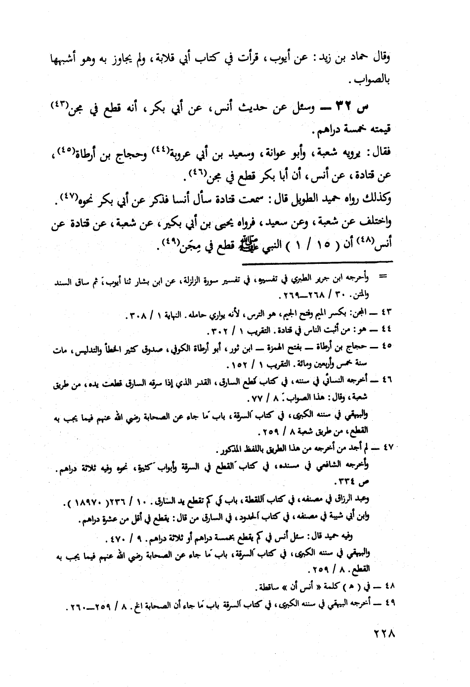32- وَسُئِلَ عَنْ حَدِيثِ أَنَسٍ، عَنْ أَبِي بَكْرٍ أَنَّهُ قَطَعَ فِي مِجَنٍّ قِيمَتُهُ خَمْسَةُ دَرَاهِمَ.