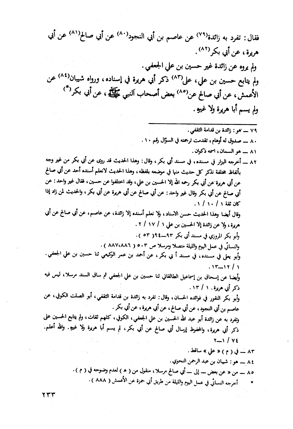 فَقَالَ: تَفَرَّدَ بِه زَائِدَةُ، عَنْ عَاصِمِ بْنِ أَبِي النَّجُودِ، عَنْ أَبِي صَالِحٍ، عَنْ أَبِي هُرَيْرَةَ، عَنْ أَبِي بَكْرٍ.