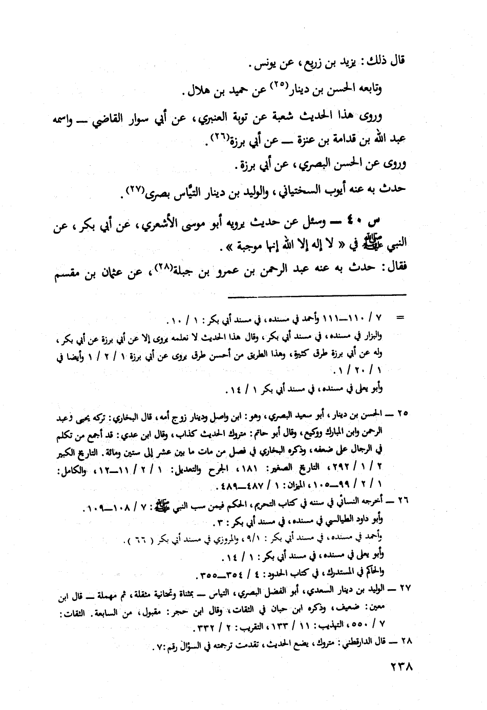 40- وَسُئِلَ عَنْ حَدِيثٍ يَرْوِيهِ أَبُو مُوسَى الْأَشْعَرِيُّ، عن أَبِي بَكْرٍ، عَنِ النَّبِيِّ صَلَّى اللَّهُ عَلَيْهِ وَسَلَّمَ؛ فِي لَا إِلَهَ إِلَّا اللَّهُ إِنَّهَا مُوجِبَةٌ.
