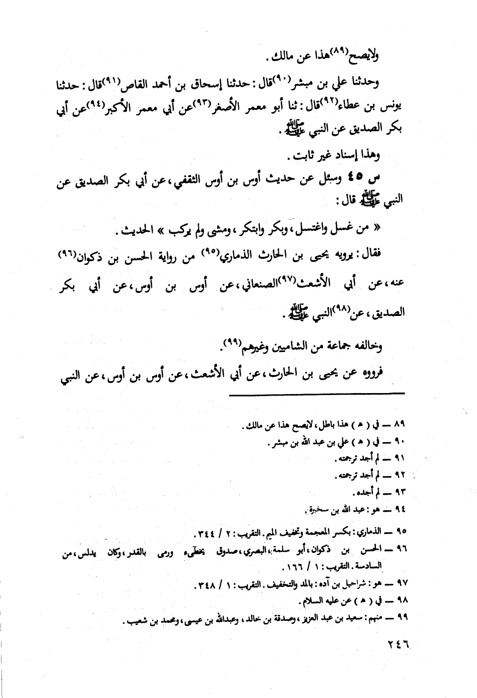 45- وَسُئِلَ عَنْ حَدِيثِ أَوْسِ بْنِ أَوْسٍ الثَّقَفِيُّ، عَنْ أَبِي بَكْرٍ الصِّدِّيقِ، عَنِ النَّبِيِّ صَلَّى اللَّهُ عَلَيْهِ وَسَلَّمَ، قَالَ: مَنْ غَسَّلَ وَاغْتَسَلَ، وبكر وابتكر، ومشى ولم يركب ... الحديث.