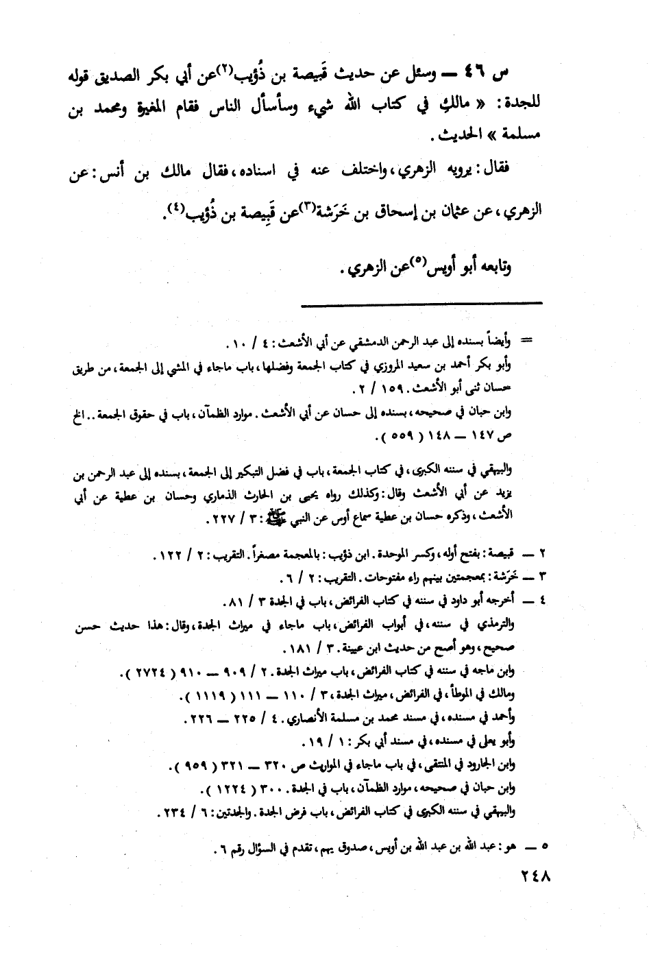 46- وَسُئِلَ عَنْ حَدِيثِ قَبِيصَةَ بْنِ ذُؤَيْبٍ، عَنْ أَبِي بَكْرٍ الصِّدِّيقِ قَوْلُهُ لِلْجَدَّةِ مَالَكِ فِي كِتَابِ اللَّهِ شَيْءٌ وَسَأَسْأَلُ النَّاسَ فَقَامَ الْمُغِيرَةُ، وَمُحَمَّدُ بْنُ مَسْلَمَةَ الْحَدِيثَ.