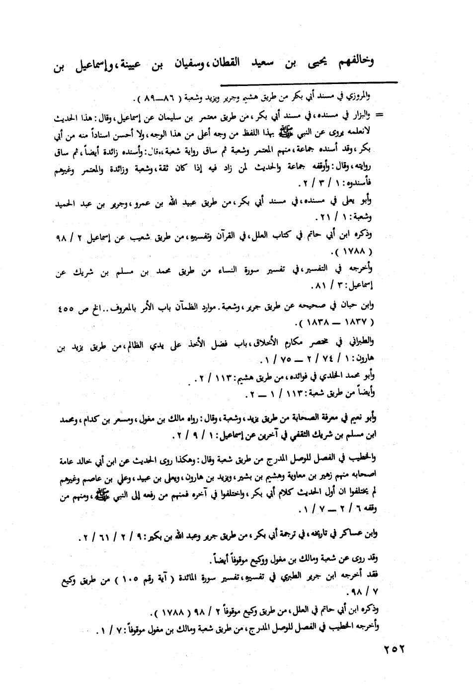 وَجَمِيعُ رُوَاةِ هَذَا الْحَدِيثِ ثِقَاتٌ وَيُشْبِهُ أَنْ يَكُونَ قَيْسُ بْنُ أَبِي حَازِمٍ كَانَ يَنْشَطُ فِي الرِّوَايَةِ مَرَّةً فَيُسْنِدُهُ، وَمَرَّةً يَجْبُنُ عَنْهُ فَيَقِفَهُ عَلَى أَبِي بَكْرٍ.
