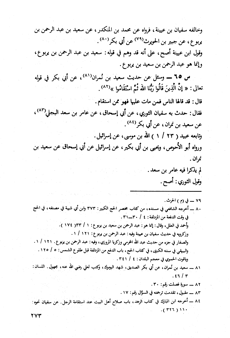 65- وَسُئِلَ عَنْ حَدِيثِ سَعِيدِ بْنِ نِمْرَانَ، عَنْ أَبِي بَكْرٍ فِي قَوْلِهِ تَعَالَى: {إِنَّ الَّذِينَ قالوا ربنا الله ثم استقاموا} .