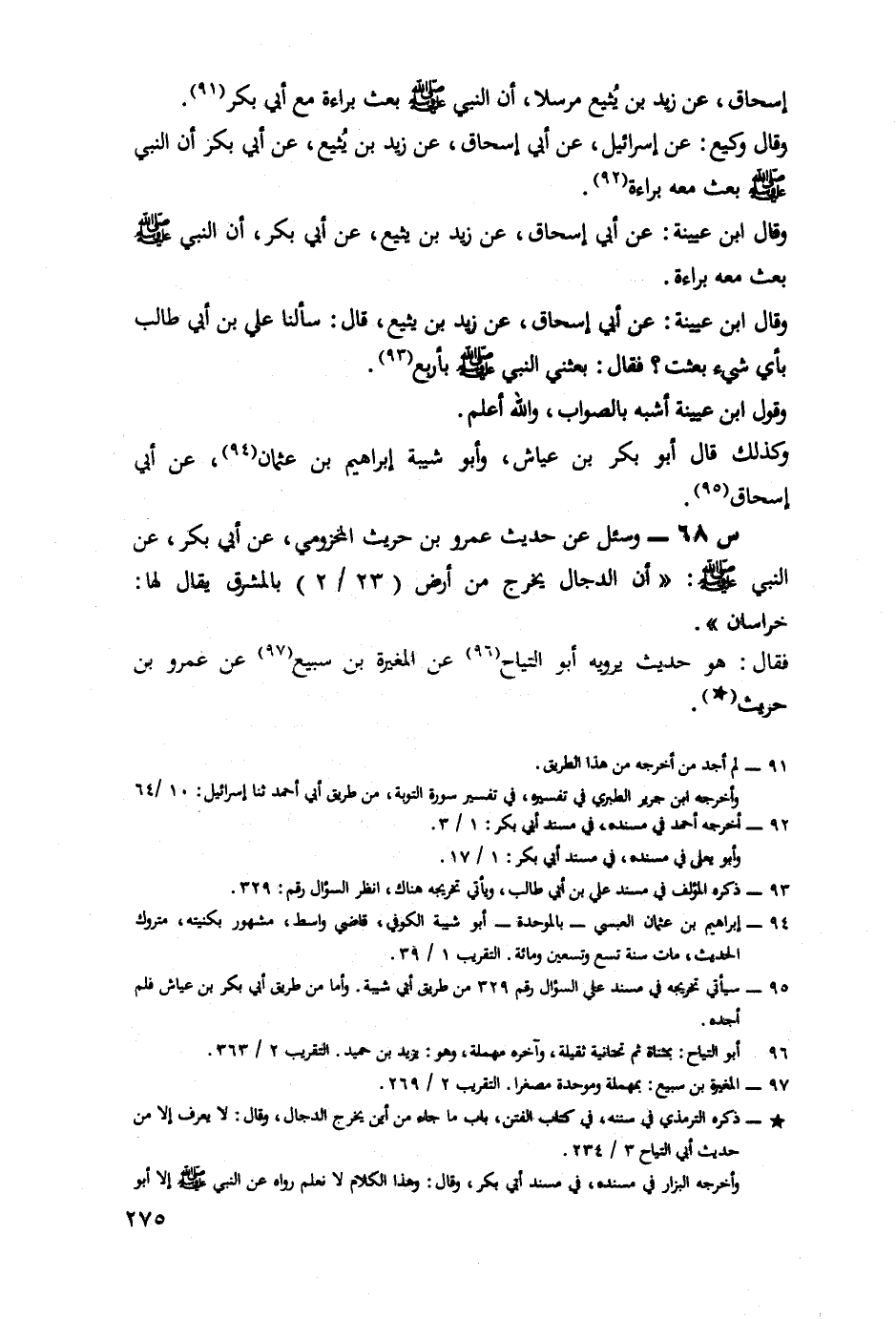 68- وَسُئِلَ عَنْ حَدِيثِ عَمْرِو بْنِ حُرَيْثٍ الْمَخْزُومِيِّ، عن أَبِي بَكْرٍ، عَنِ النَّبِيِّ صَلَّى اللَّهُ عَلَيْهِ وَسَلَّمَ؛ أَنَّ الدَّجَّالَ يَخْرُجُ مِنْ أَرْضٍ بِالْمَشْرِقِ يُقَالُ لَهَا: خُرَاسَانُ.