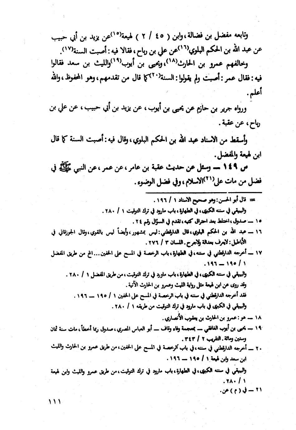وَأَسْقَطَ مِنَ الْإِسْنَادِ عَبْدَ اللَّهِ بْنَ الْحَكَمِ الْبَلَوِيَّ وَقَالَ فِيهِ أَصَبْتَ السُّنَّةَ كَمَا قَالَ ابْنُ لَهِيعَةَ وَالْمُفَضَّلُ.