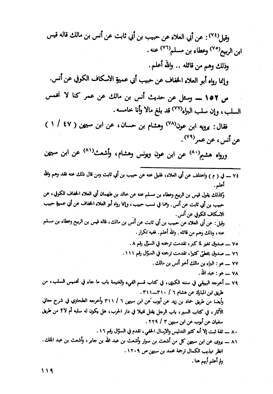 152- وَسُئِلَ عَنْ حَدِيثِ أَنَسِ بْنِ مَالِكٍ، عَنْ عُمَرَ كُنَّا لَا نُخَمِّسُ السَّلَبِ وَإِنْ سَلَبَ الْبَرَاءُ قَدْ بَلَغَ مَالًا وَأَنَا خَامِسُهُ.