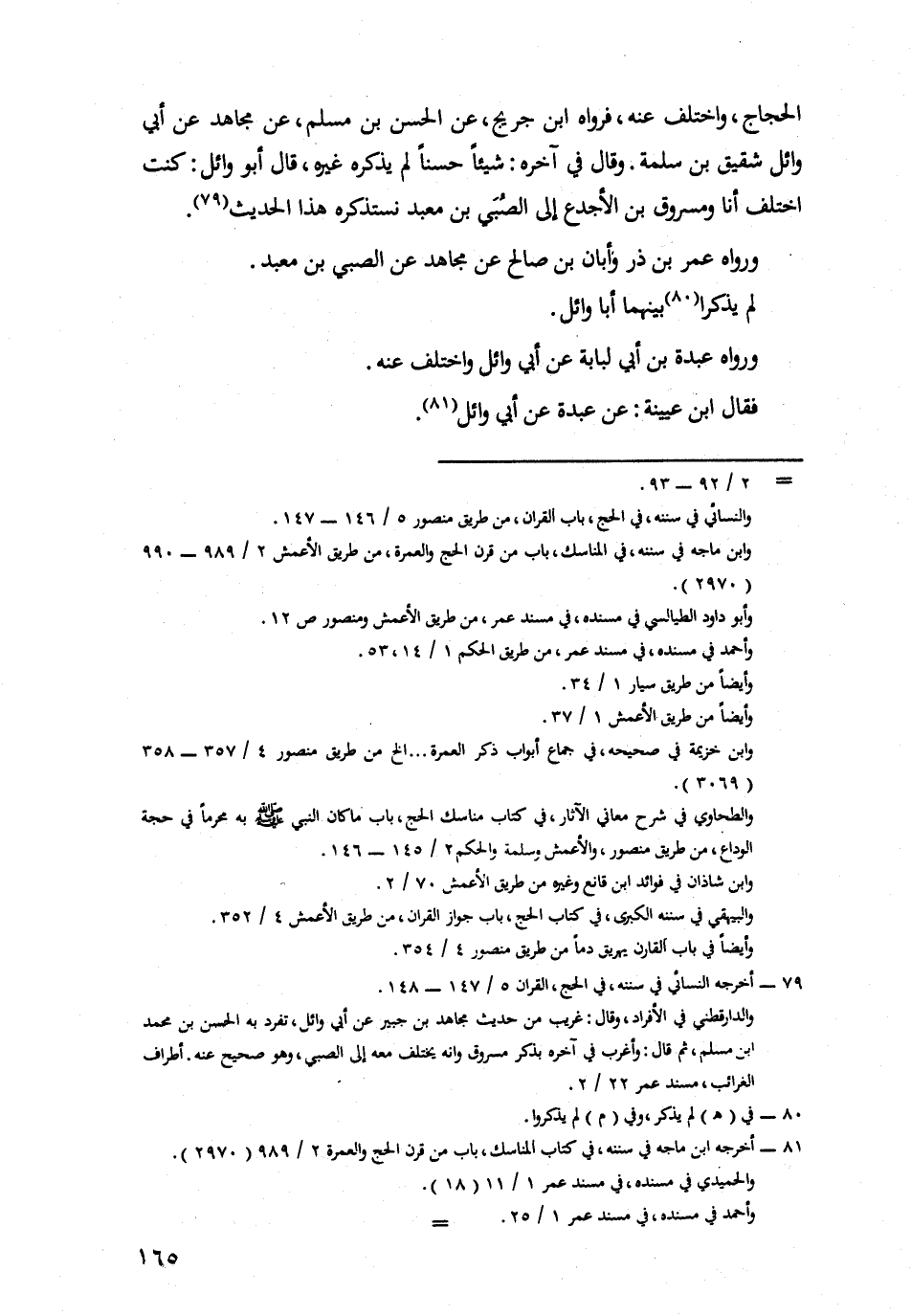 فَرَوَاهُ ابْنُ جُرَيْجٍ، عَنِ الْحَسَنِ بْنِ مُسْلِمٍ، عَنْ مُجَاهِدٍ، عَنْ أَبِي وَائِلٍ شَقِيقِ بْنِ سَلَمَةَ وَقَالَ فِي آخِرِهِ: شَيْئًا حَسَنًا لَمْ يذكره غيره، قَالَ أَبُو وَائِلٍ: كُنْتُ اخْتَلِفُ أَنَا وَمَسْرُوقُ بْنُ الْأَجْدَعِ إِلَى الصُّبَيِّ بْنِ مَعْبَدٍ نَسْتَذْكِرُهُ هَذَا الْحَدِيثَ.