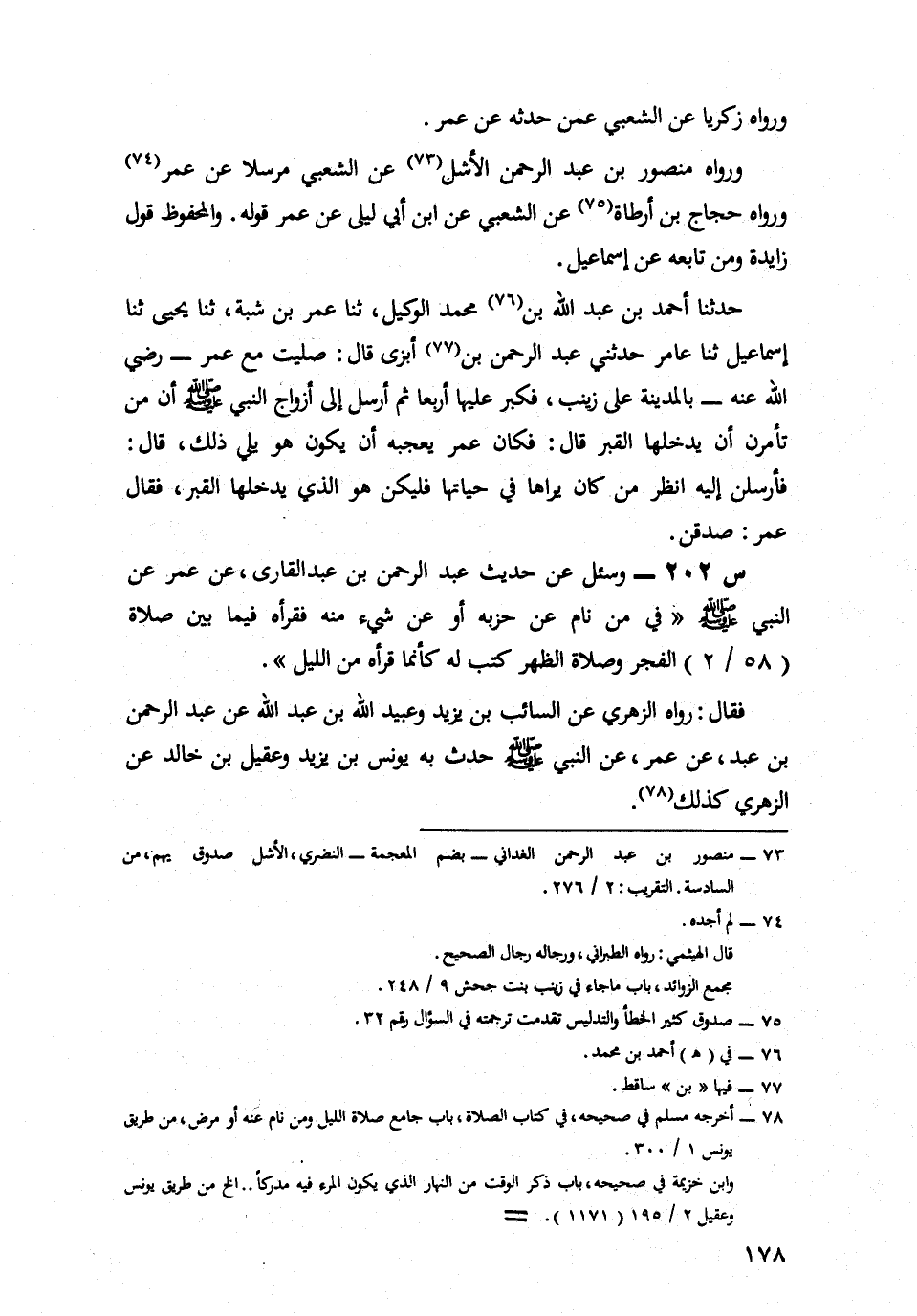 202- وَسُئِلَ عَنْ حَدِيثِ عَبْدِ الرَّحْمَنِ بْنِ عَبْدِ الْقَارِيِّ، عَنْ عُمَرَ، عَنِ النَّبِيِّ صَلَّى اللَّهُ عَلَيْهِ وَسَلَّمَ؛ فِي مَنْ نَامَ عَنْ حِزْبِهِ أَوْ عَنْ شَيْءٍ مِنْهُ فَقَرَأَهُ فِيمَا بَيْنَ صَلَاةِ الْفَجْرِ وَصَلَاةِ الظُّهْرِ كُتِبَ لَهُ كَأَنَّمَا قَرَأَهُ مِنَ اللَّيْلِ.