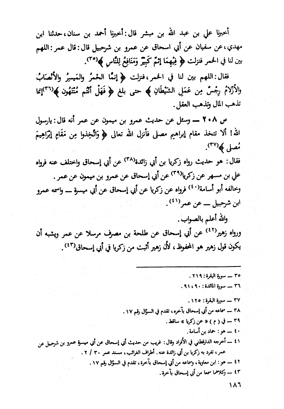 208- وَسُئِلَ عَنْ حَدِيثِ عَمْرِو بْنِ مَيْمُونٍ، عَنْ عُمَرَ، أَنَّهُ قَالَ: يَا رَسُولَ اللَّهِ أَلَا تَتَّخِذُ مَقَامَ إِبْرَاهِيمَ مُصَلًّى فَأَنْزَلَ اللَّهُ تَعَالَى: {واتخذوا من مقام إبراهيم مصلى} .
