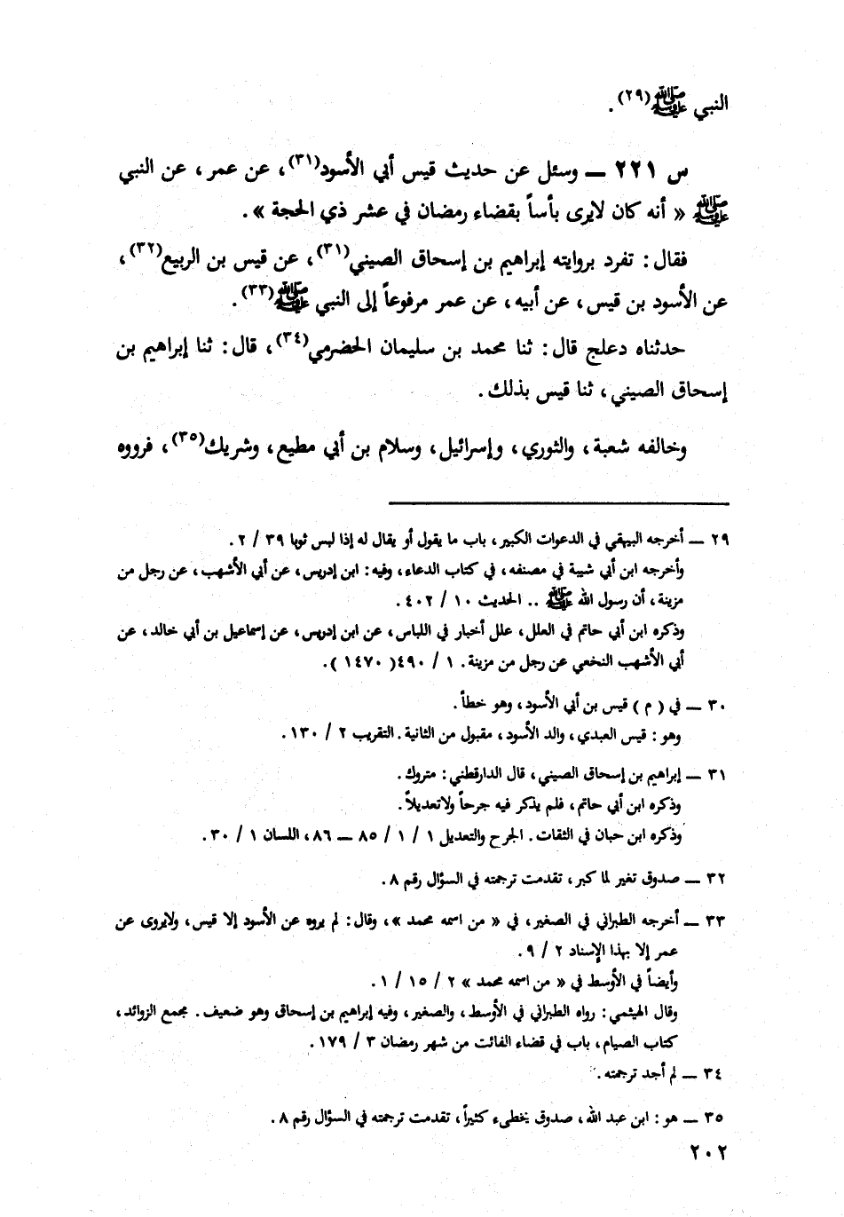 221- وَسُئِلَ عَنْ حَدِيثِ قَيْسٍ أَبِي الْأَسْوَدِ، عَنْ عُمَرَ، عَنِ النَّبِيِّ صَلَّى اللَّهُ عَلَيْهِ وَسَلَّمَ؛ أَنَّهُ كَانَ لَا يَرَى بَاْسًا بِقَضَاءِ رَمَضَانَ فِي عَشْرِ ذِي الْحِجَّةِ.