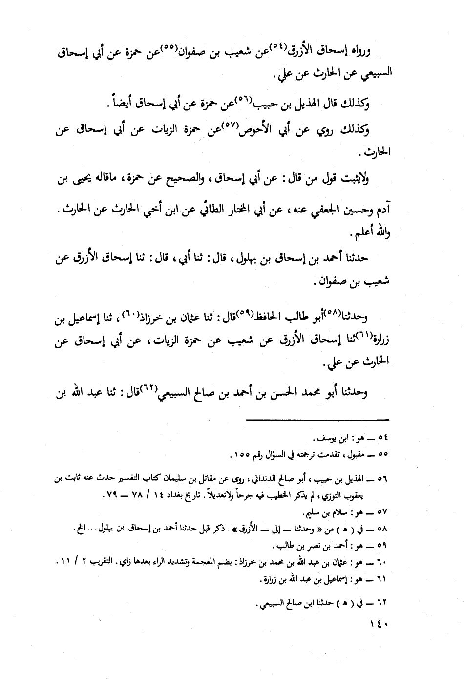 وَحَدَّثَنَا أبو طالب الحافظ، قال: حدثنا عثمان بن خرزاذ، حدثنا إسماعيل بن زرارة، حدثنا إِسْحَاقُ الْأَزْرَقُ، عَنْ شُعَيْبٍ، عَنْ حَمْزَةَ الزَّيَّاتِ، عَنْ أَبِي إِسْحَاقَ، عَنِ الْحَارِثِ، عَنْ عَلِيٍّ.