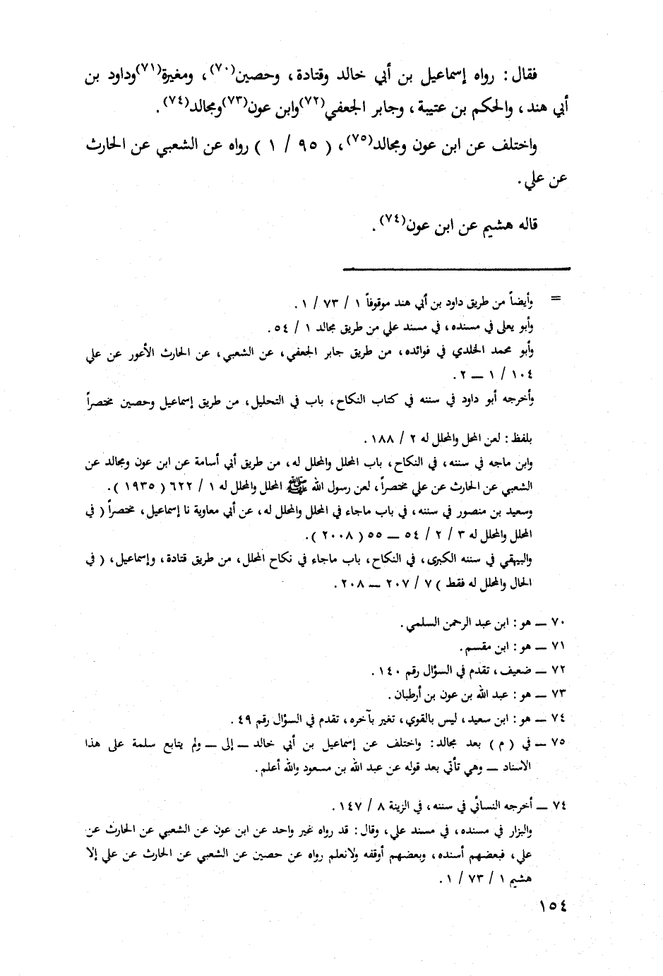 وَاخْتُلِفَ عَنِ ابْنِ عَوْنٍ، وَمُجَالِدٍ، رَوَاهُ عَنِ الشَّعْبِيِّ، عَنِ الْحَارِثِ، عَنْ عَلِيٍّ.