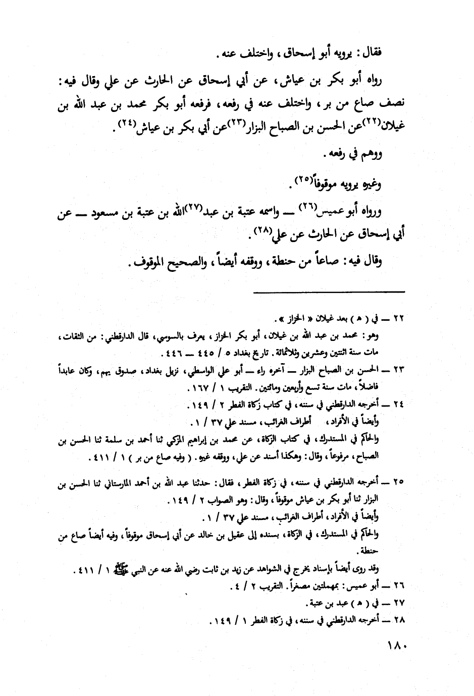 رَوَاهُ أَبُو بَكْرِ بْنُ عَيَّاشٍ، عَنْ أَبِي إِسْحَاقَ، عَنِ الْحَارِثِ، عَنْ عَلِيٍّ، وَقَالَ فِيهِ: نِصْفُ صَاعٍ مِنْ بُرٍّ، وَاخْتُلِفَ عَنْهُ فِي رَفْعِهِ، فَرَفَعَهُ أَبُو بَكْرٍ مُحَمَّدُ بْنُ عَبْدِ اللَّهِ بْنِ غَيْلَانَ، عَنِ الْحَسَنِ بْنِ الصَّبَّاحِ البَّزَّارِ، عَنْ أَبِي بَكْرِ بْنِ عَيَّاشٍ.
