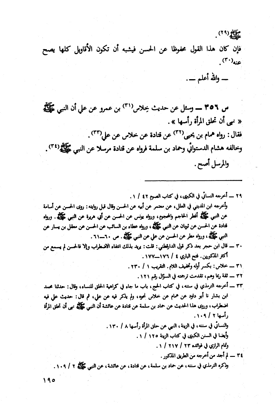 356- وسئل عن حديث خلاس بن عمرو، عن علي، أن النبي صلى الله عليه وسلم نَهَى أَنْ تَحْلِقَ الْمَرْأَةُ رَأْسَهَا.