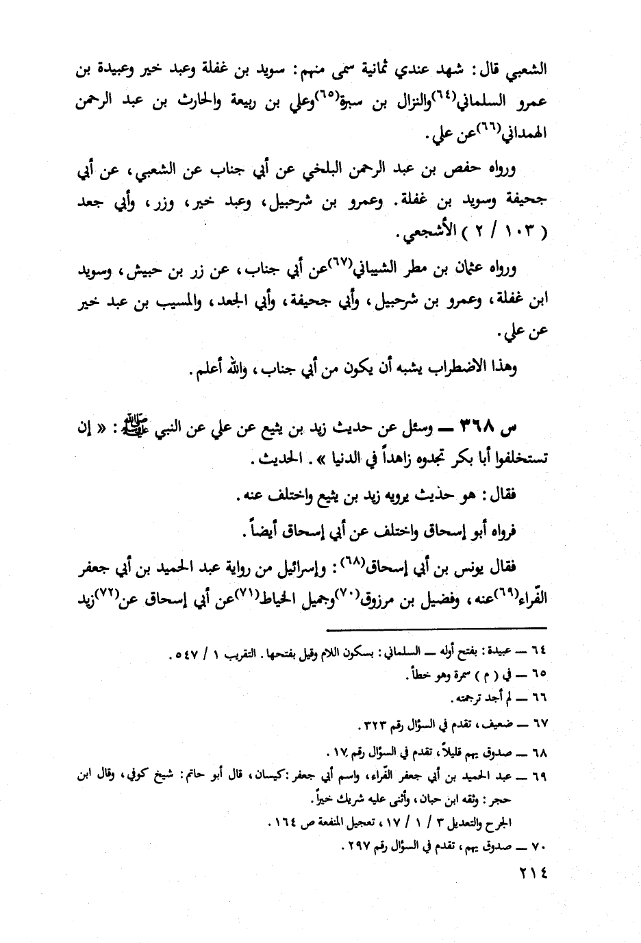 368- وَسُئِلَ عَنْ حَدِيثِ زَيْدِ بْنِ يُثَيْعٍ، عَنْ عَلِيٍّ، عَنِ النَّبِيِّ صَلَّى اللَّهُ عَلَيْهِ وسلم: إِنْ تَسْتَخْلِفُوا أَبَا بَكْرٍ تَجِدُوهُ زَاهِدًا فِي الدُّنْيَا، ... الْحَدِيثَ.